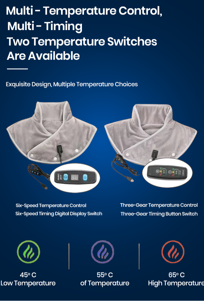 This wrap combines adjustable heat therapy and vibration massage to provide deep muscle relaxation, improve circulation, and relieve neck and shoulder stiffness. The heat penetrates the muscles, helping to reduce tension and promote faster recovery.
